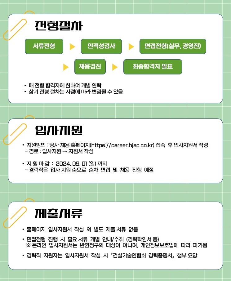 HJ중공업 건설부문 2024 정규직 채용공고 토목 및 안전 분야