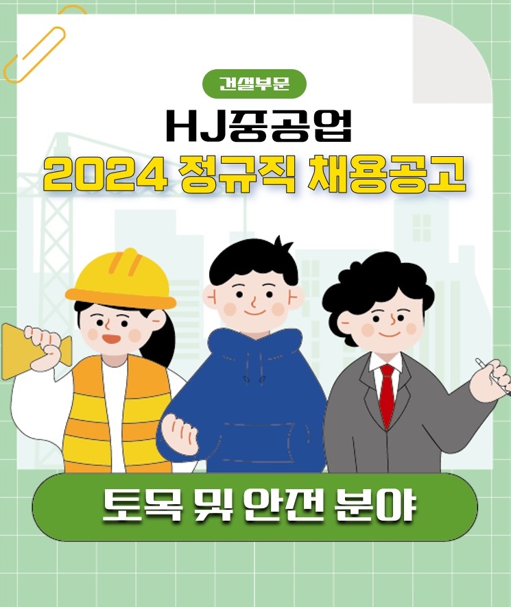HJ중공업 건설부문 2024 정규직 채용공고 토목 및 안전 분야