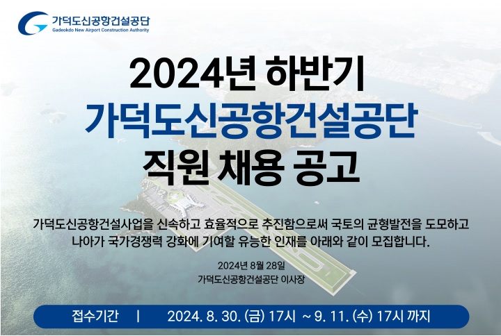 [가덕도신공항건설공단] 2024년 하반기 가덕도신공항건설공단 직원 채용 공고 (~09/11 17:00) (마감일
