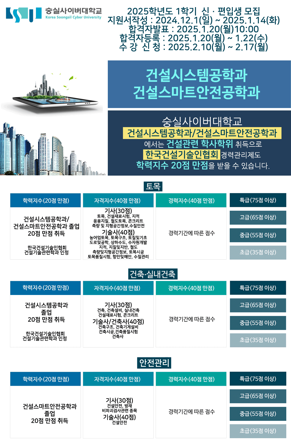 [숭실사이버대학교 건설시스템공학과/건설스마트안전공학과] 2025학년도 1학기 신/편입생 모집(4