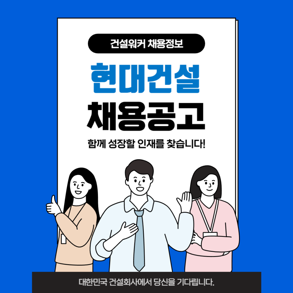 오늘에서 내일로 기술에서 기적으로 더 큰 세상을 연결하는 현대건설이 우수한 인재 여러분을 기다리고 있습니다.