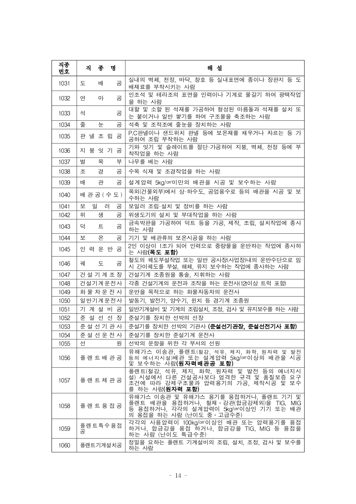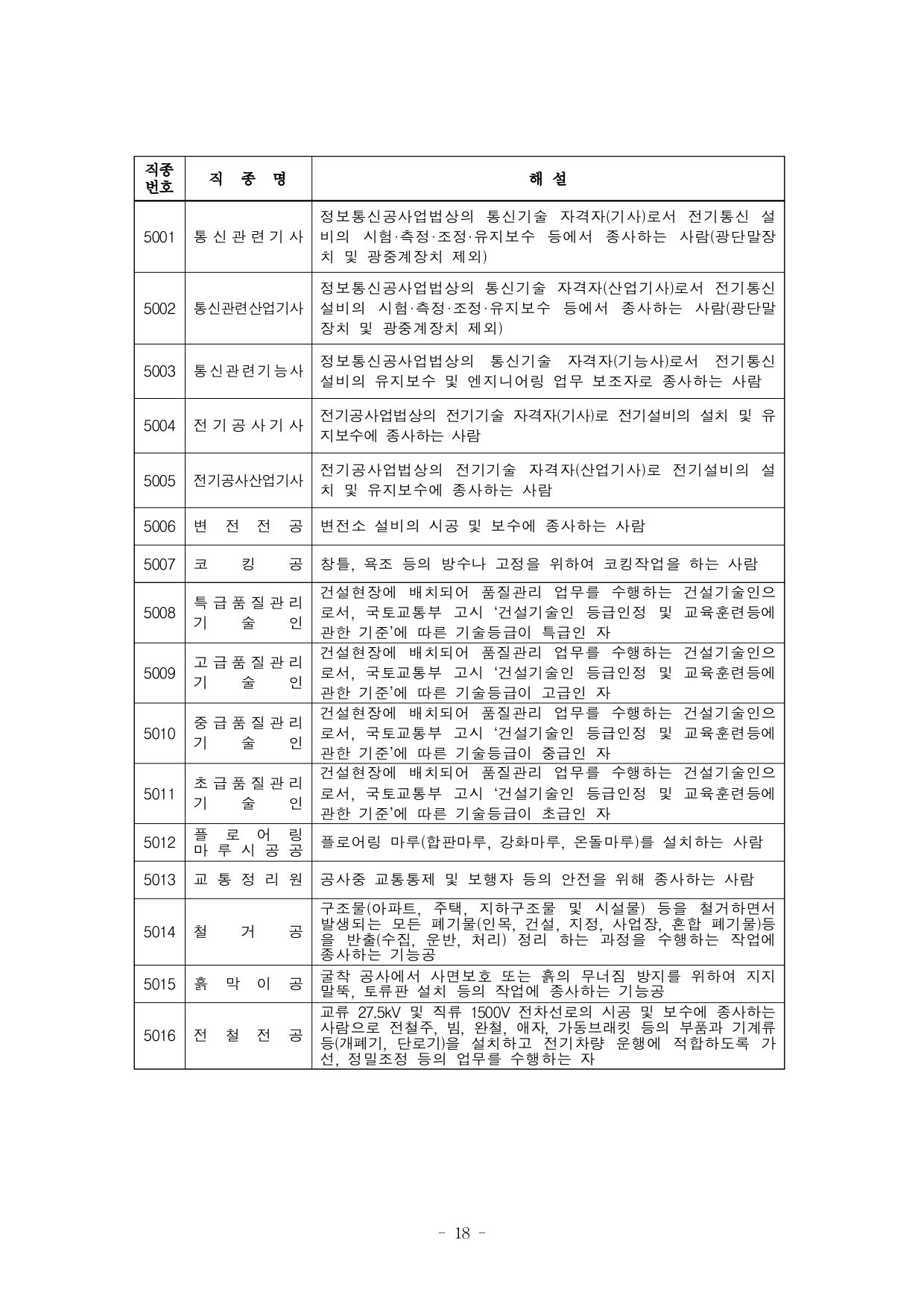 1. 일반공사직종 (91개 직종)