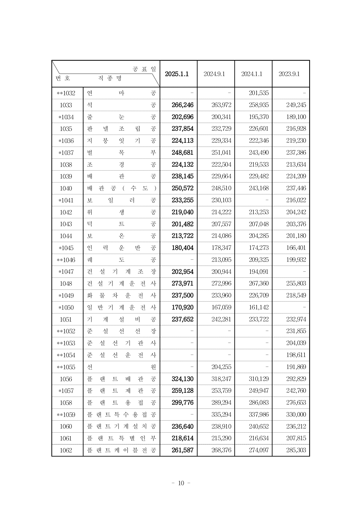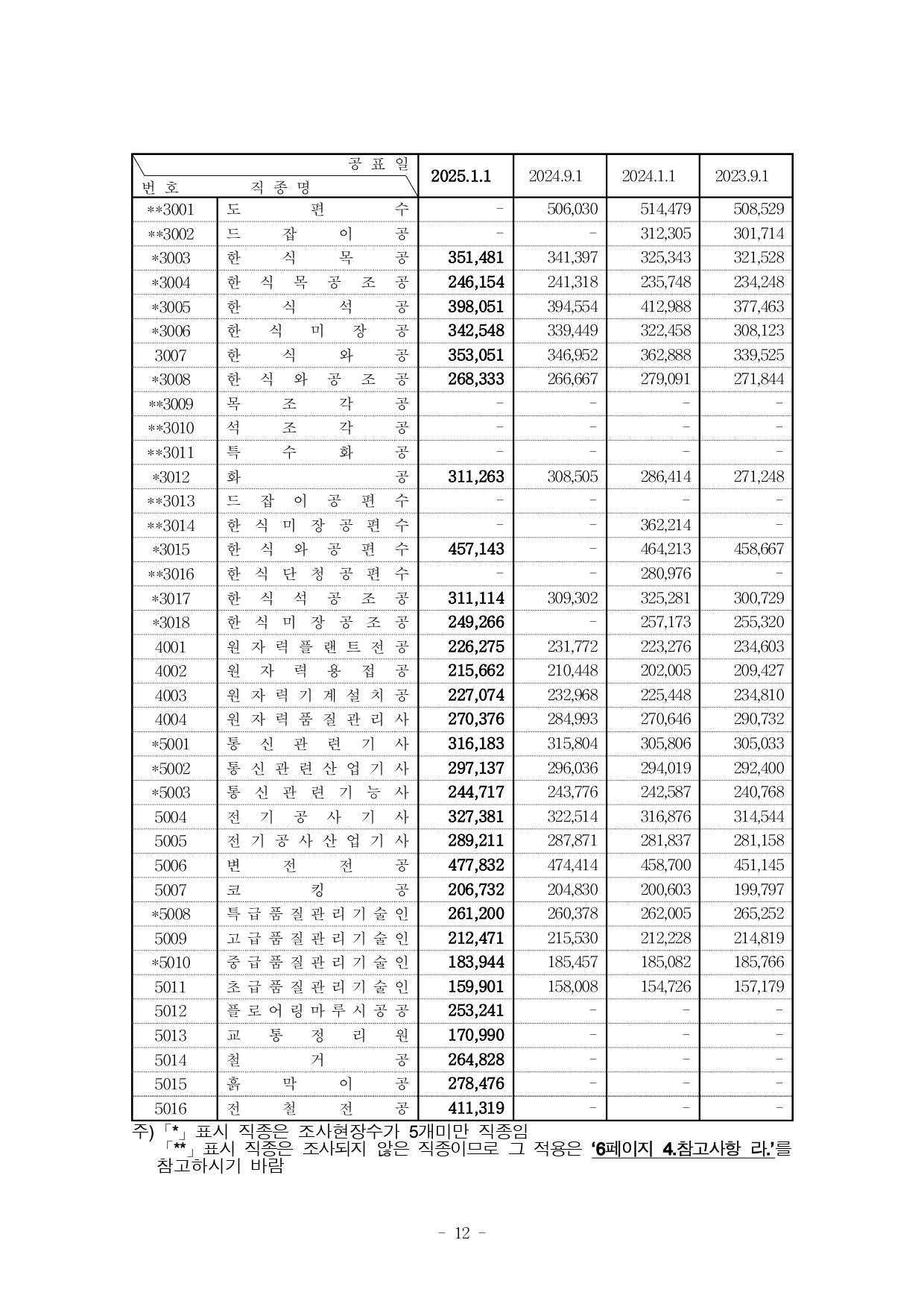 건설업 개별 직종별 노임단가: 2025년 상반기 적용 일평균 임금