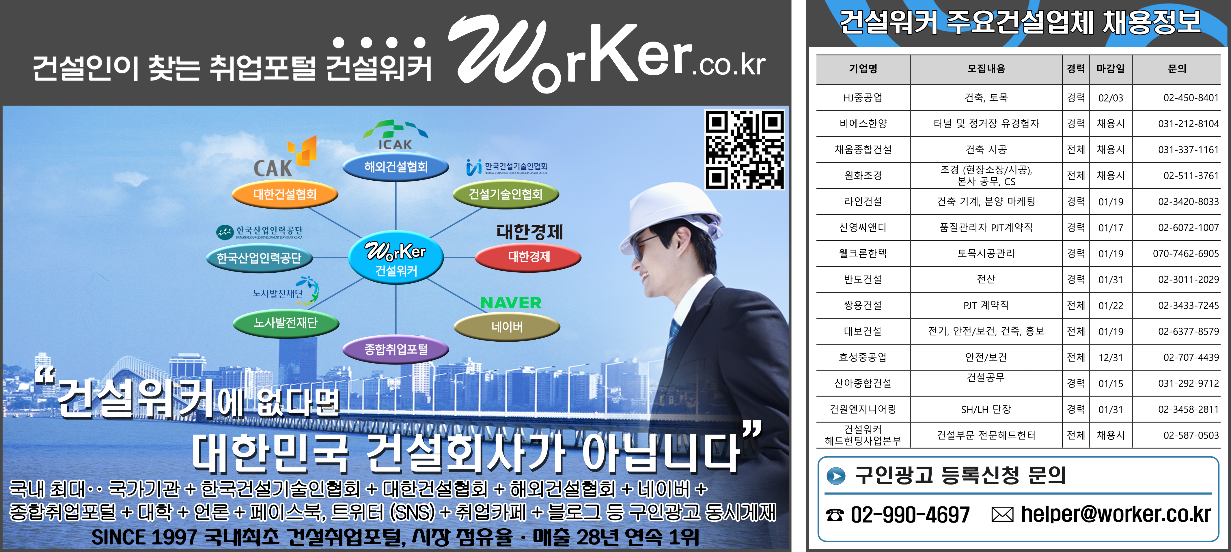 | 건설워커 헤드헌팅사업본부 | 건설부문 전문헤드헌터 | 전체 | 채용시 | 02-587-0503 |