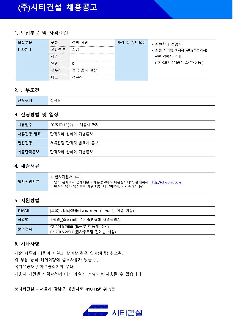 [토목] civildj95@cityenc.com (e-mail만 지원 가능)