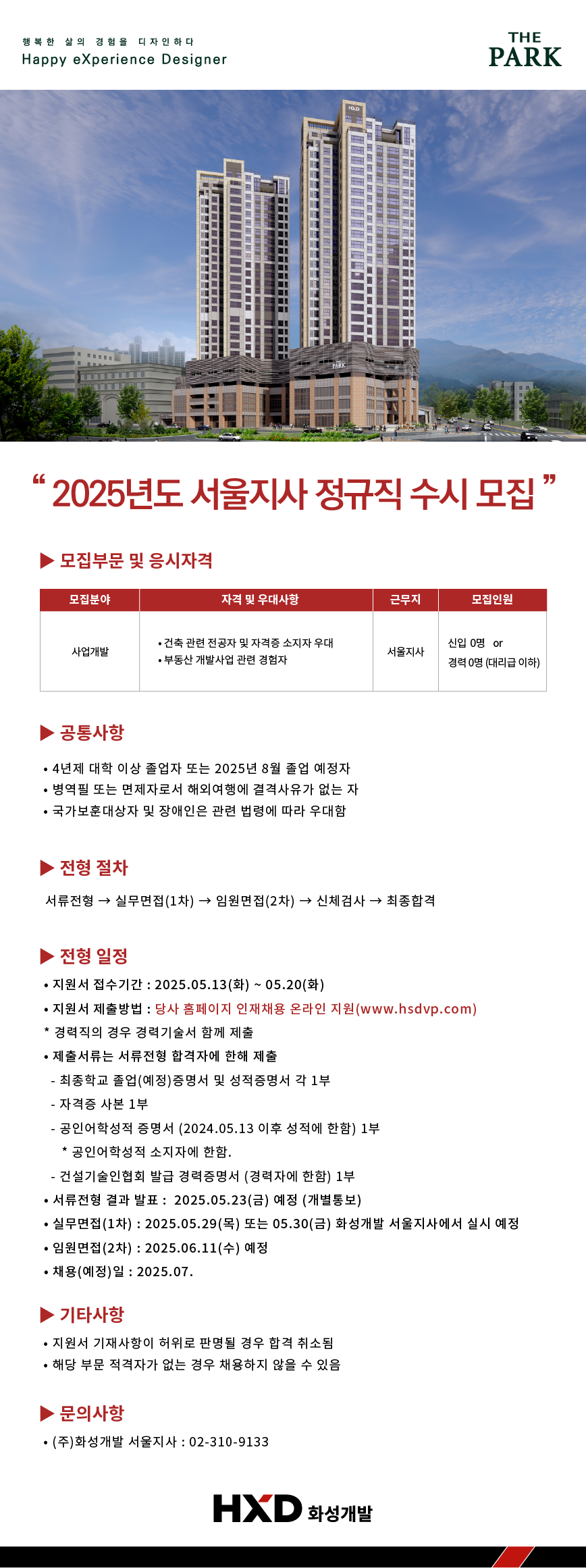 #화성개발채용 #HXD채용 #더파크브랜드 #건설회사취업 #디벨로퍼모집 #부동산개발 #건설취업 #서울지사채용 #건설워커 #2025수시채용