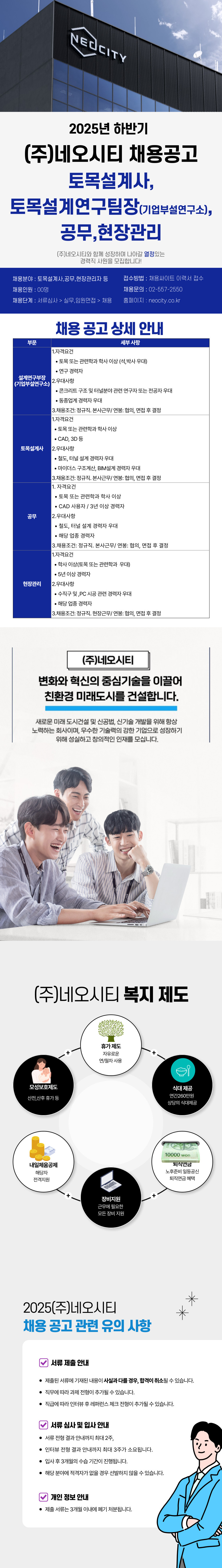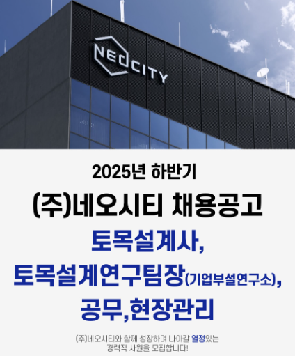 🏗 (주)네오시티 경력직 채용|토목설계사·공무·현장관리자 등 모집