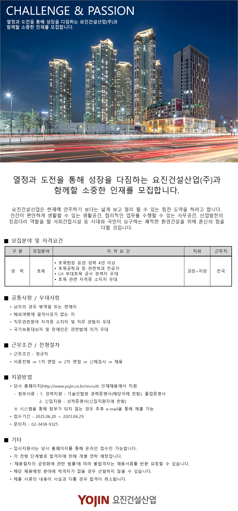 ✅ 요진건설산업(주) 2025년 토목분야 경력사원 채용
