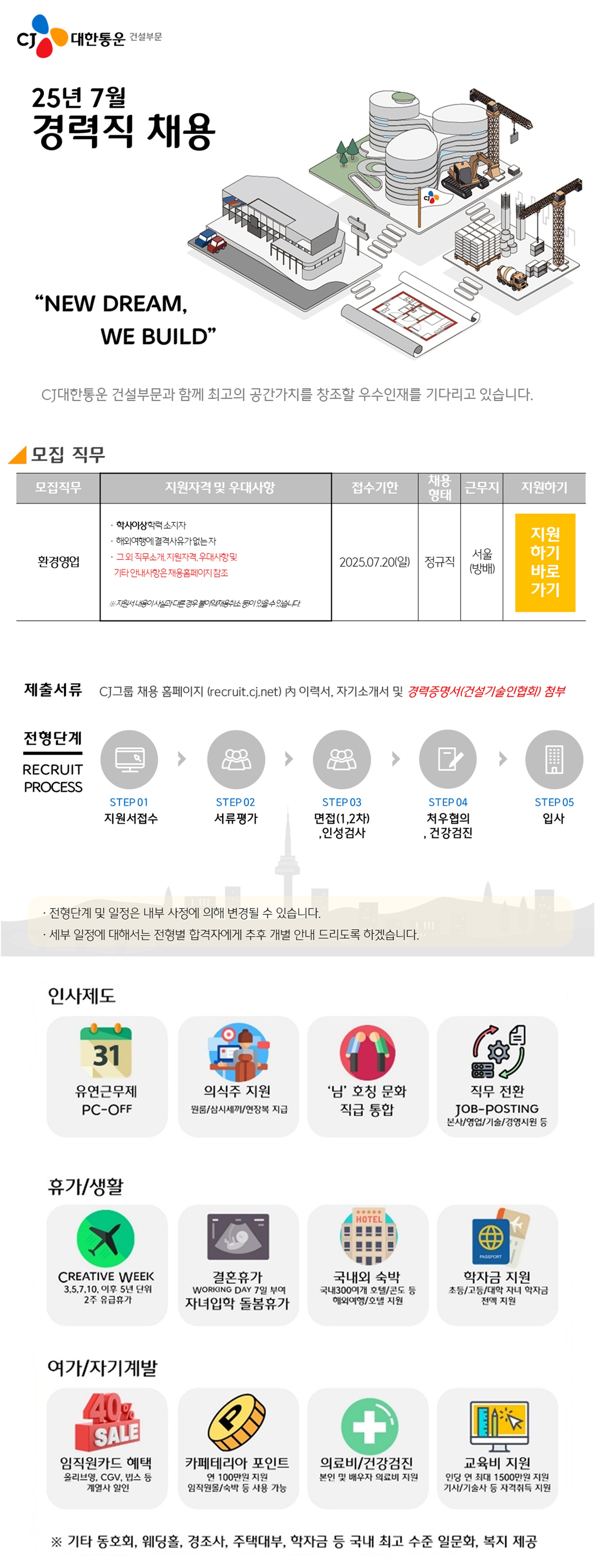 CJ대한통운 건설부문, 환경영업 경력직 채용