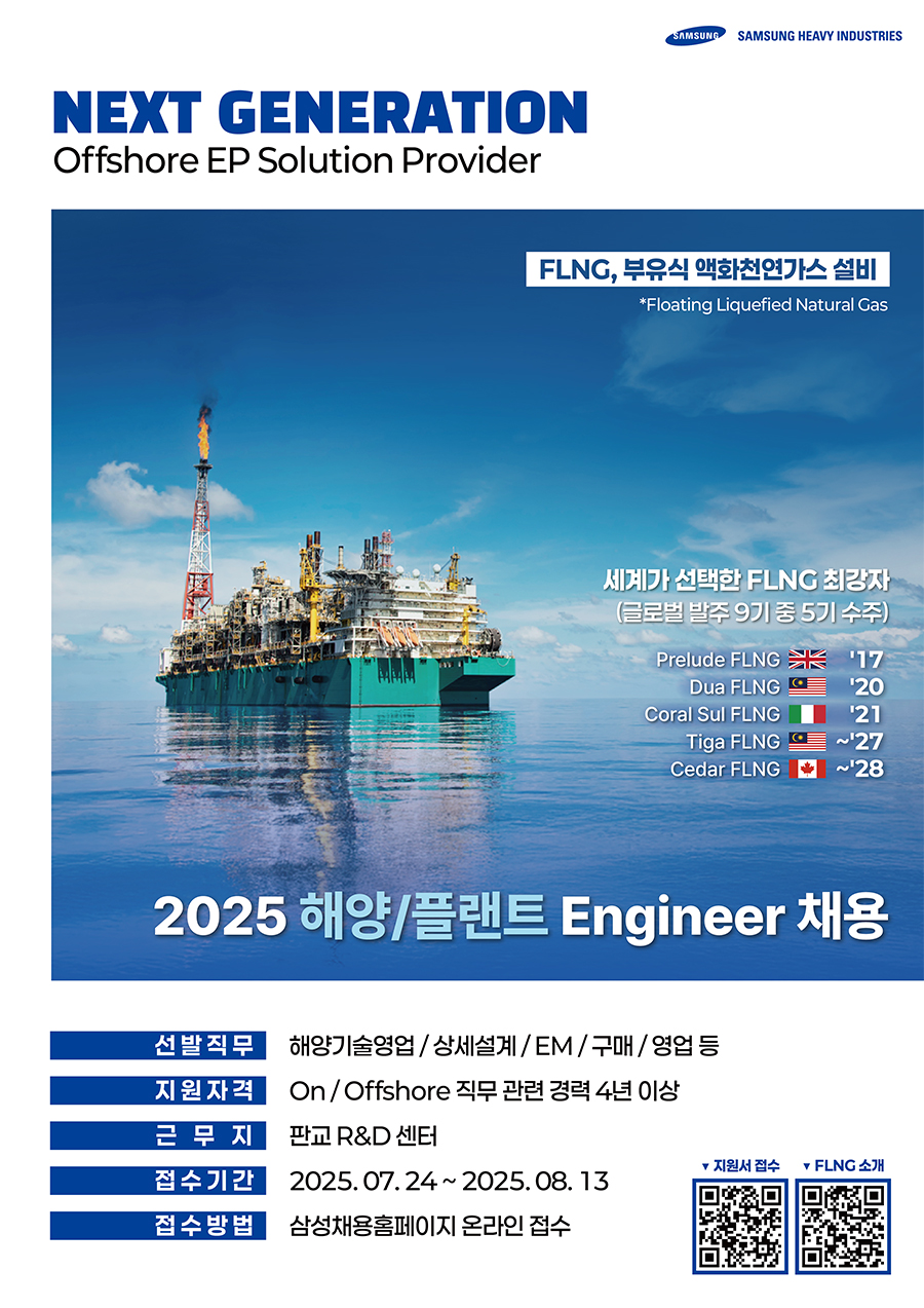 2025년 7월, 삼성중공업이 FLNG 분야 글로벌 경쟁력 강화를 위한 전문 인재 확보에 나섰습니다.