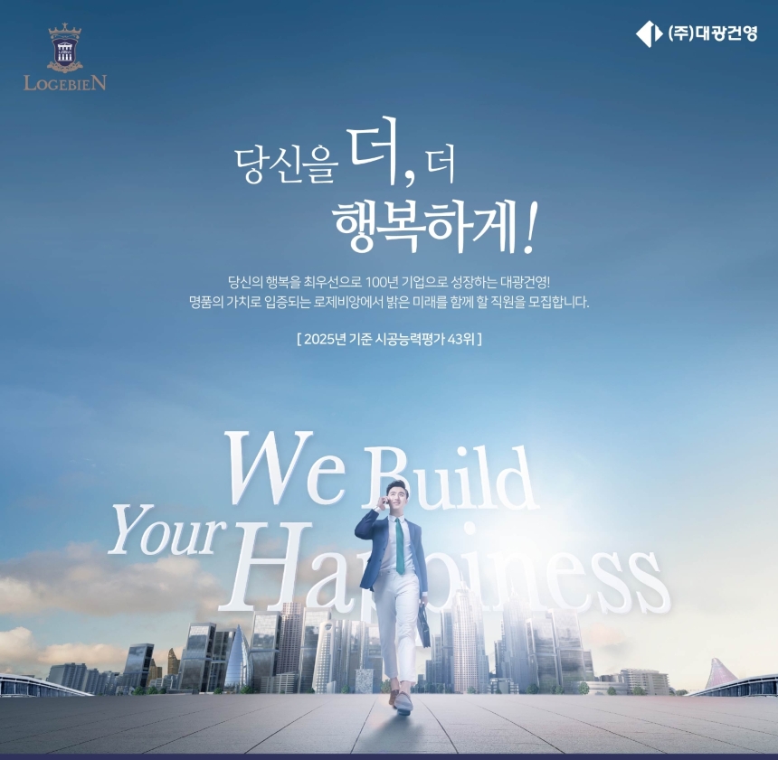 대광건영은 아파트 브랜드 ‘로제비앙(LOVEBIEN)’을 대표 브랜드로 둔 중견 건설사입니다.