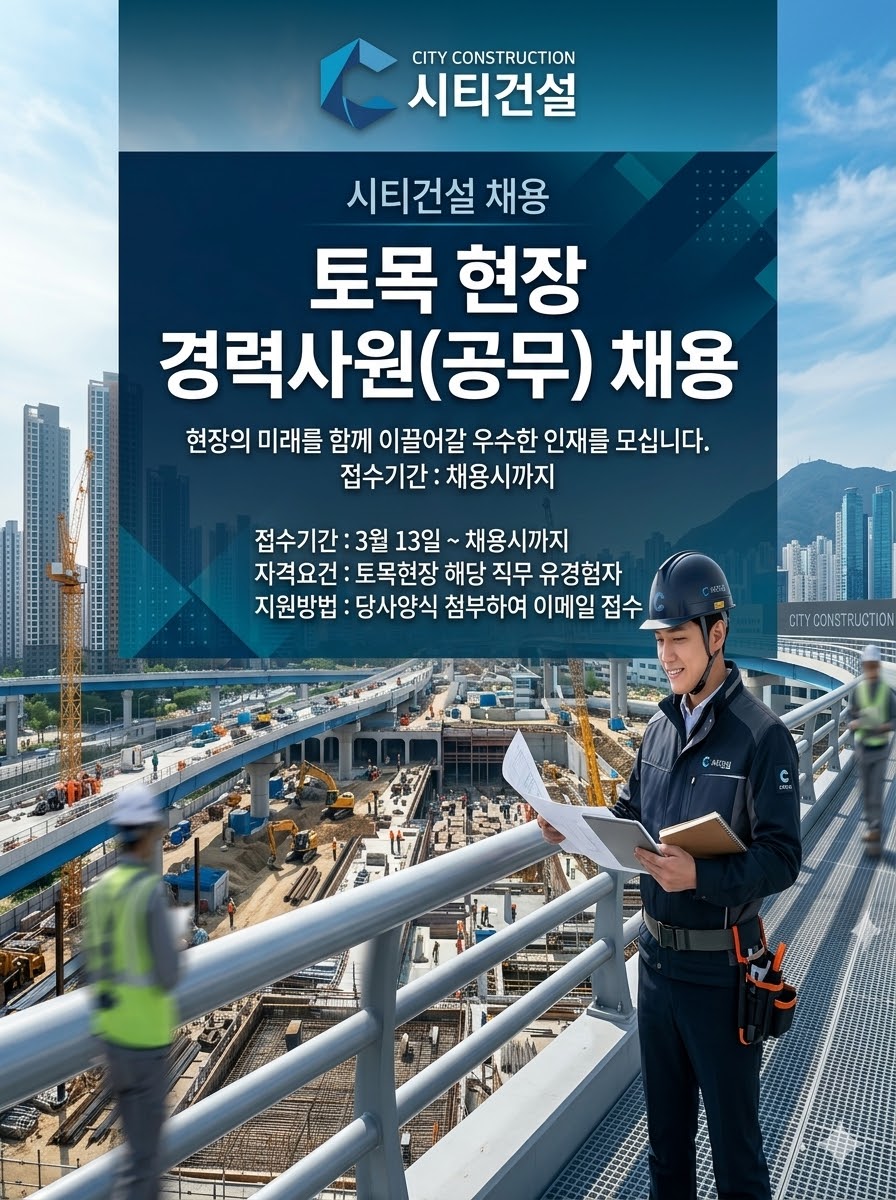 #시티건설 #토목공무채용 #토목경력직 #건설사채용 #토목현장채용 #건설워커 #건설취업 #토목취업 #건설사이직