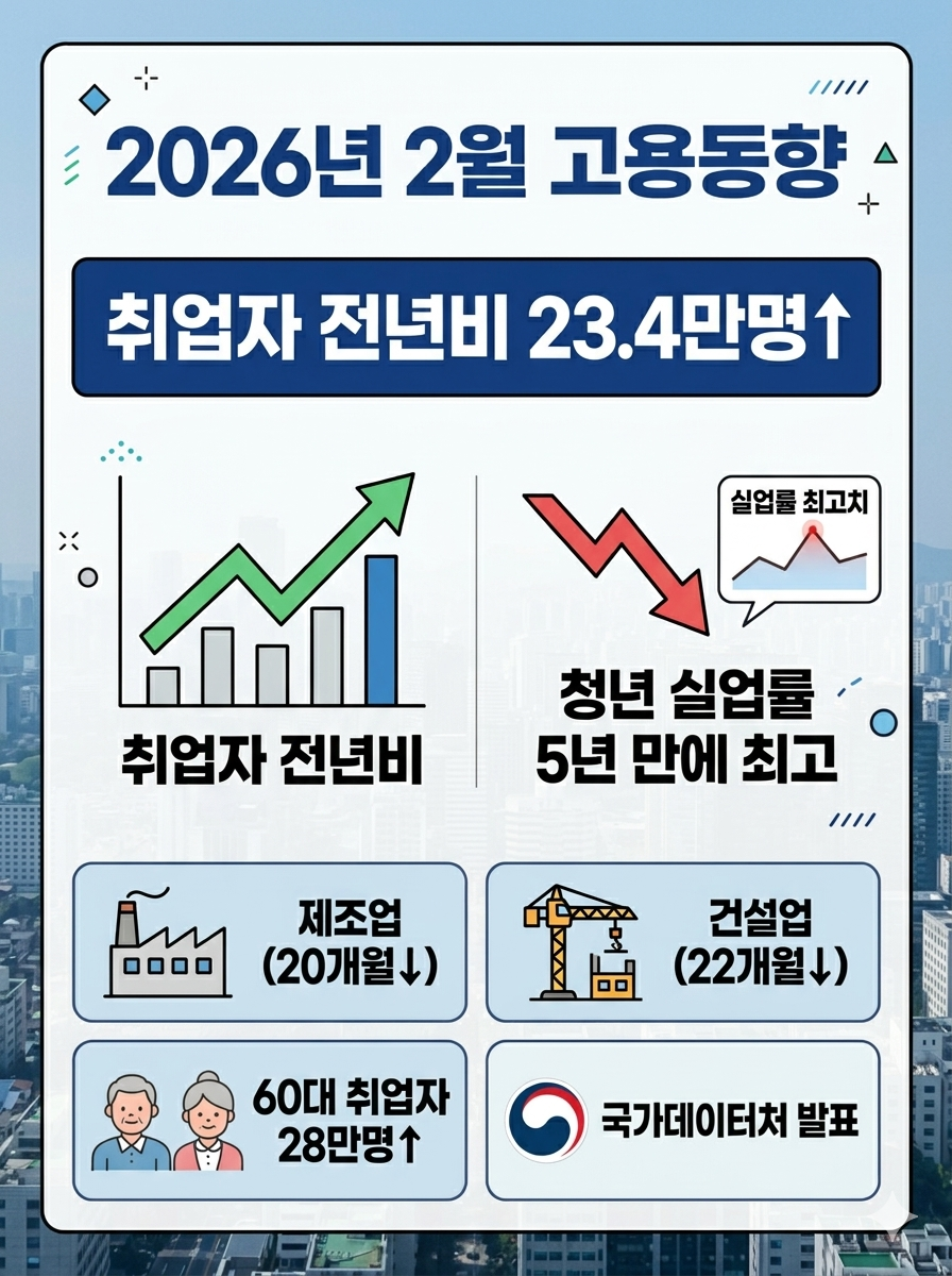 2026년 2월 취업자 수가 전년 동월 대비 23만4000명 증가하며 3개월 만에 다시 20만명대 증가폭을 회복했다.