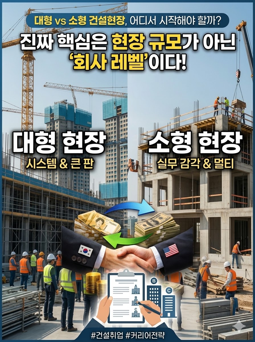 #건설취업 #건설현장 #대형현장 #소형현장 #대기업취업 #중소기업취업 #건설커리어 #취업전략 #공사관리 #건설공무