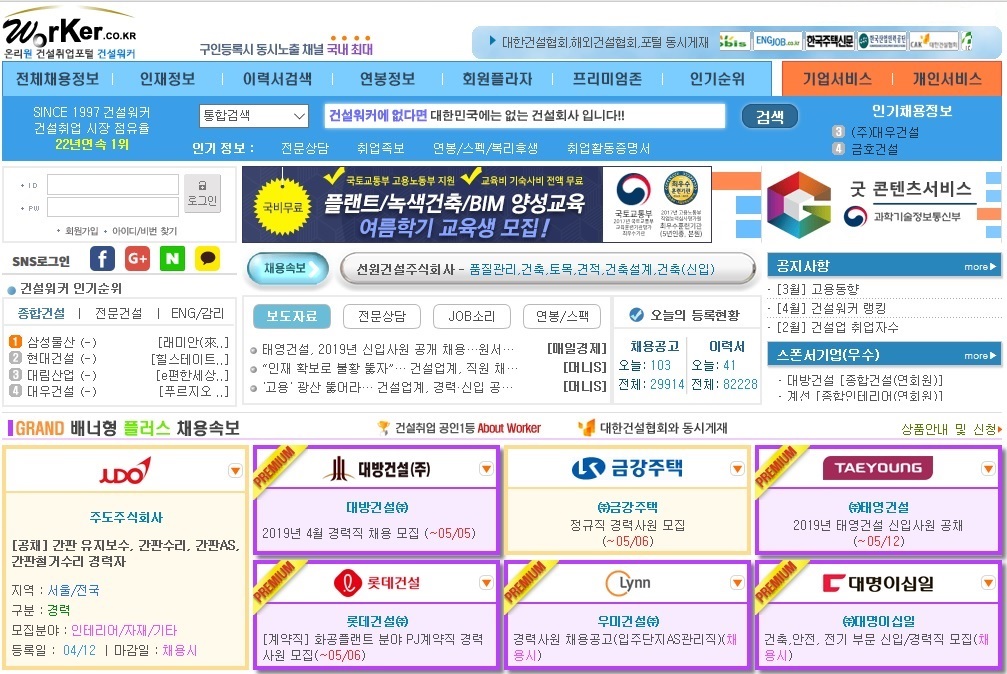 건설인이 찾는 취업포털 ‘건설워커’