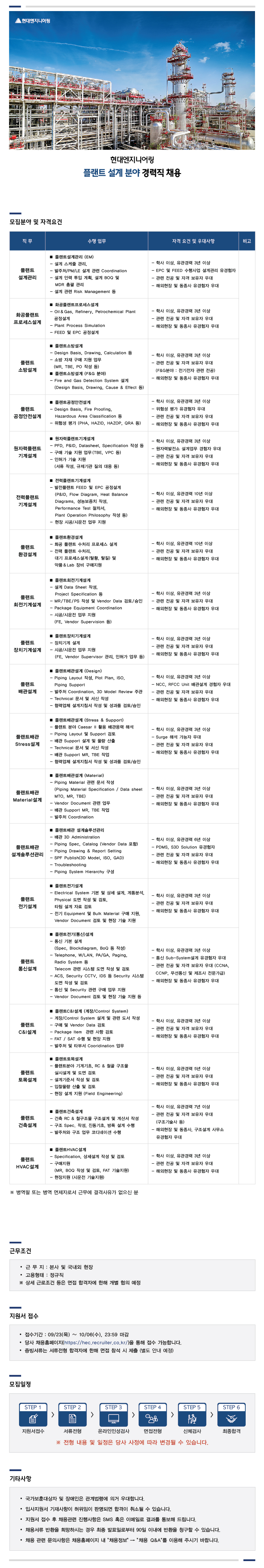 ■ 현대엔지니어링 플랜트 설계 분야 정규직 경력사원 모집
