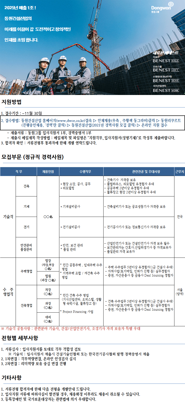 #건설워커 #단독채용속보 #동원그룹 #동원건설산업 #경력사원 #베네스트 #BENEST #동원베네스트