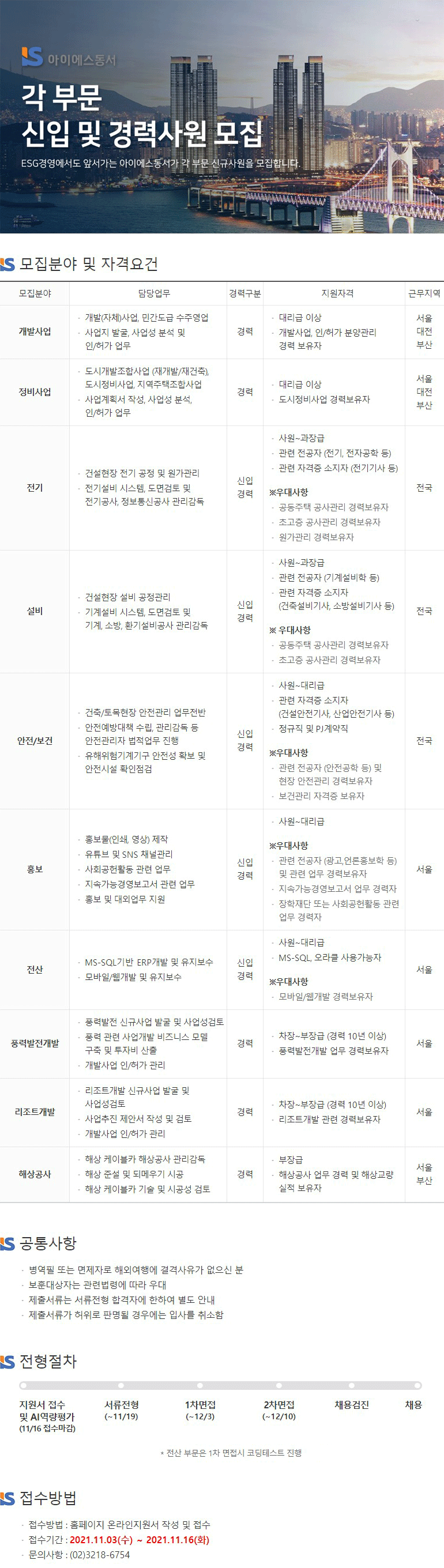 | 아이에스동서, 신입 및 경력사원 채용…건설 및 건축자재 종합기업 엔지니어 모집 (0) | 2021.11.04 |