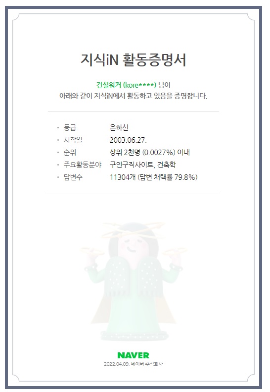 컴테크컨설팅의 배성원 건설워커 홍보총괄 이사가 네이버 지식iN 등급 중 '은하신'으로 활발하게 활동 중이다.