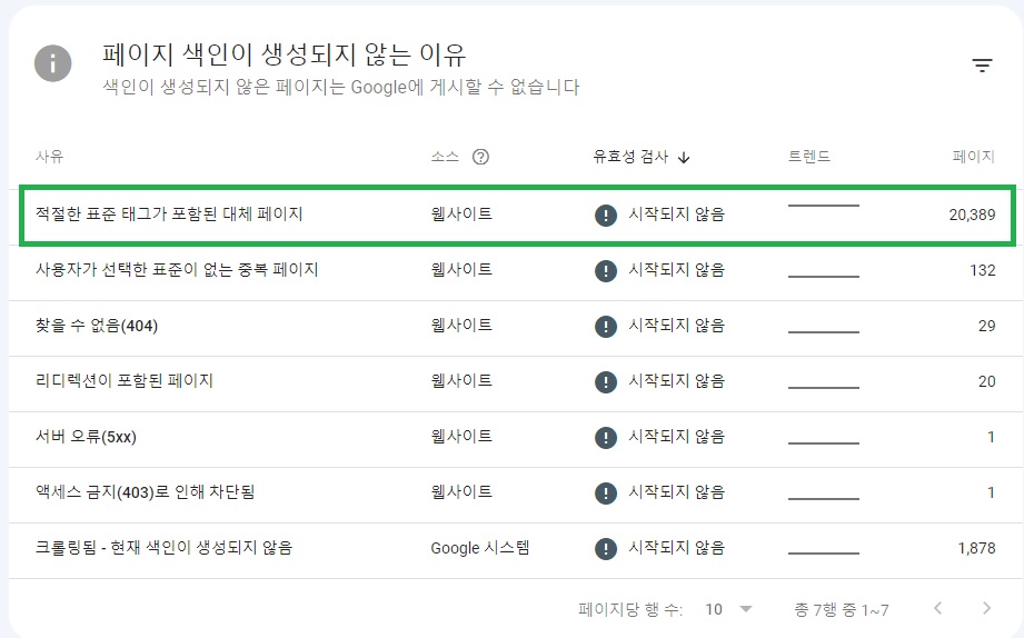 "적절한 표준 태그가 포함된 대체 페이지"가 20,389개다. 대체 이게 뭘까.
