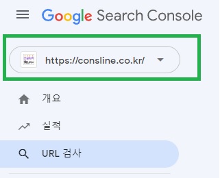 1. 구글 서치 콘솔에 로그인한 후 왼쪽 상단 주소창에 본인 블로그(혹은 사이트) 주소 확인 (아래 사진)