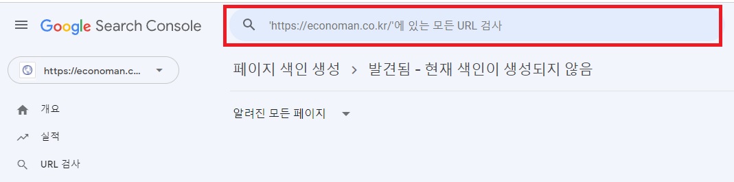 5. URL이 Google에 등록되어 있지 않음 (아래 사진)