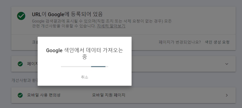 8. 색인 생성 요청됨 (팝업창) (아래 사진)