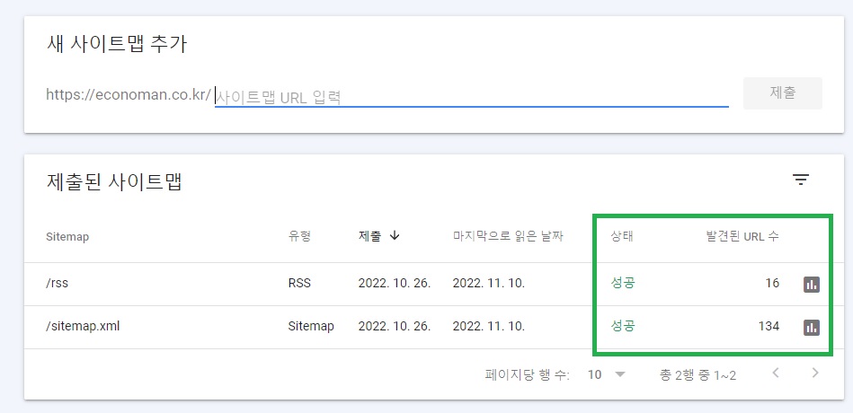 이미 사이트맵을 등록(제출)했고 상태에 '성공'이라고 나와있으면 9번은 건너뜀.