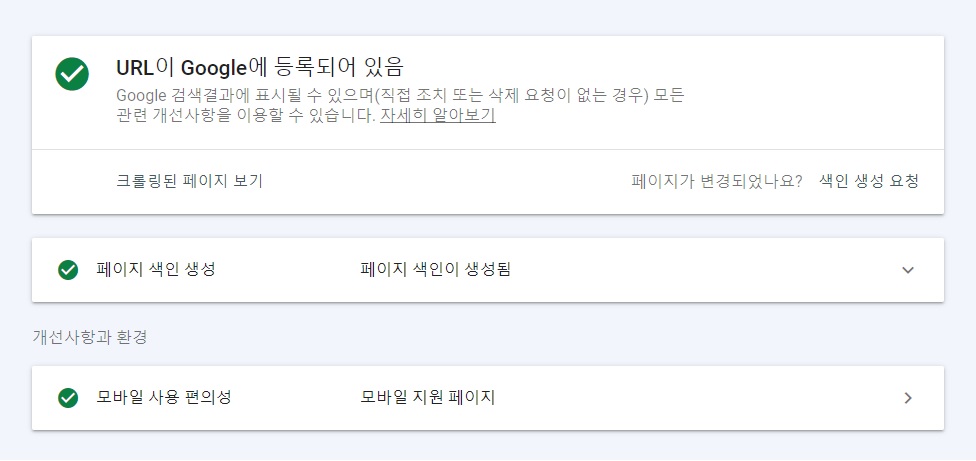 이 과정을 마치면 수동으로 구글(검색)에 크롤링 요청을 마치게 된다.