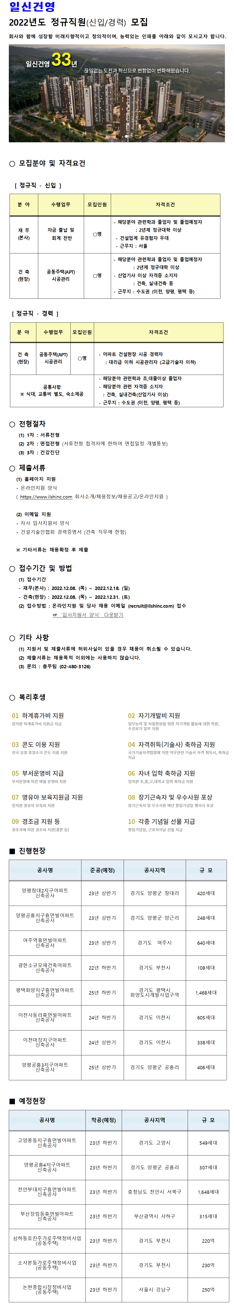 재무(본사)는 12월 18일까지 모집하며, 건축(현장)은 12월 31일까지 모집한다.