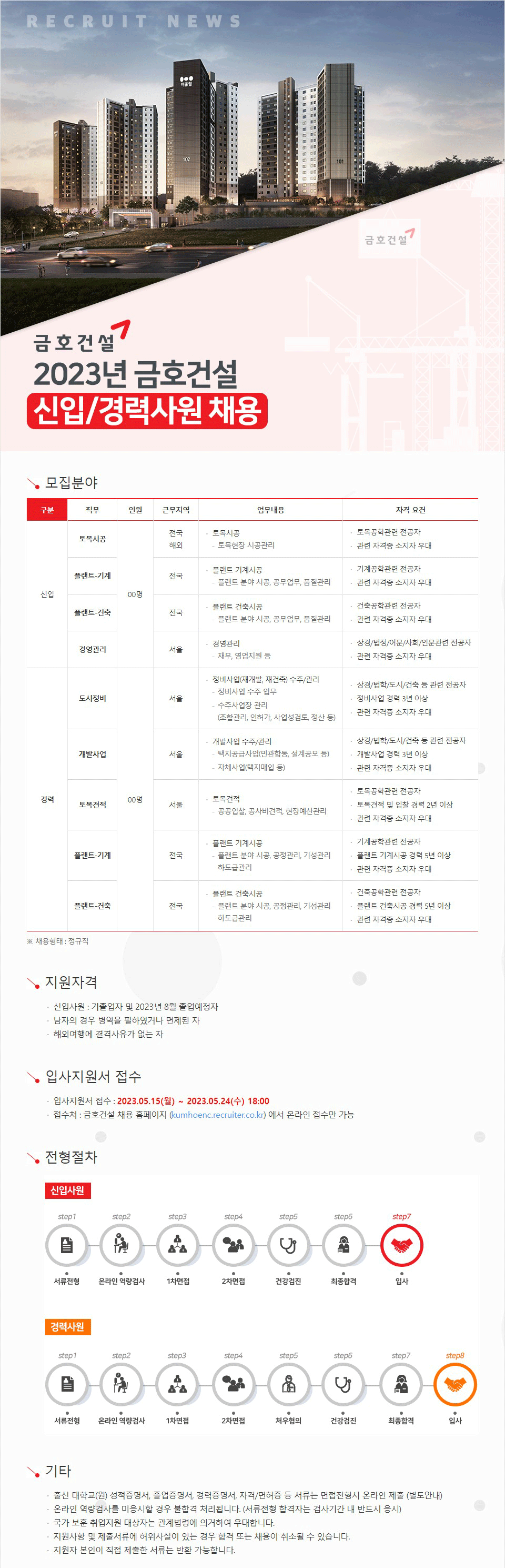 - 금호건설 2023년 신입/경력사원 채용 원문 주소(url)