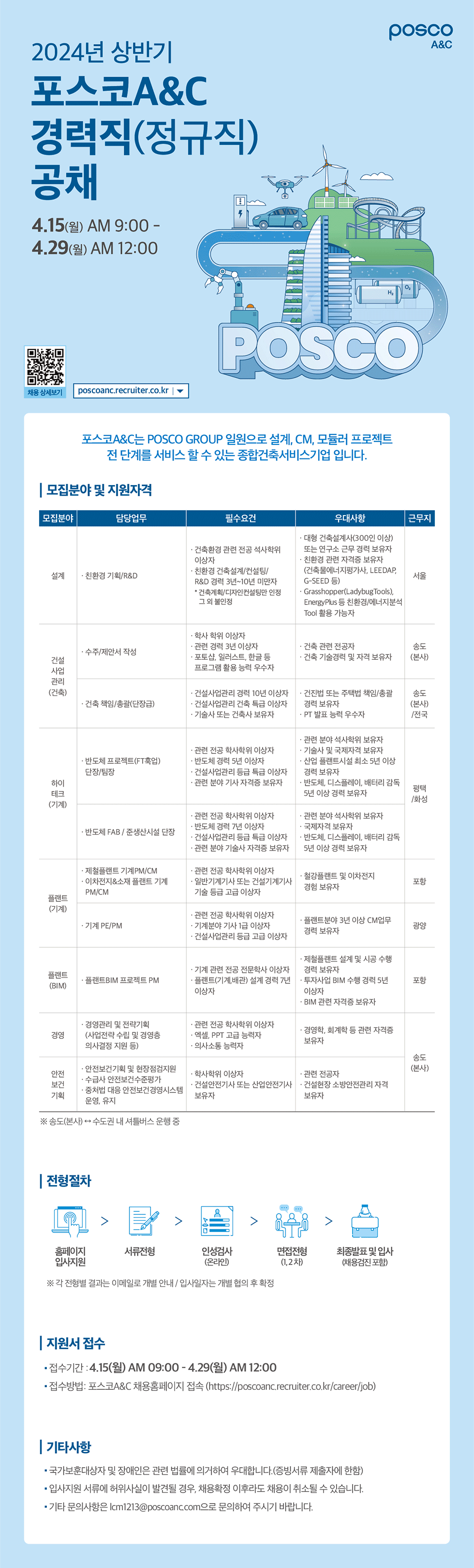 [포스코A&C] 2024년 상반기 포스코A&C 경력직(정규직) 채용 (마감일 : 04/28) - 건설취업 건설워커