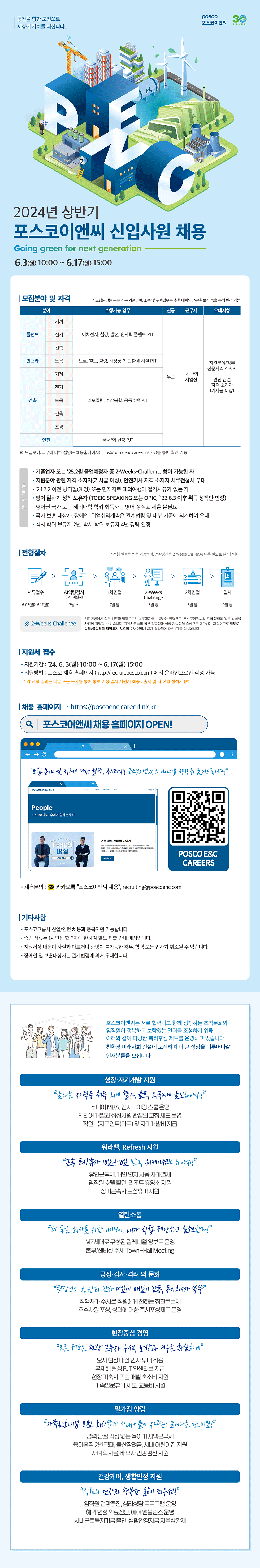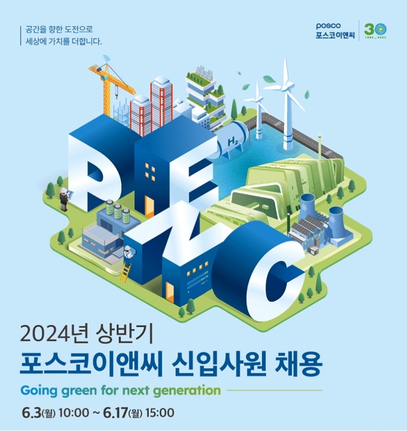 [(주)포스코이앤씨] 2024년 상반기 포스코이앤씨 신입사원 채용 (마감일 : 06/17) - 건설취업 건설워