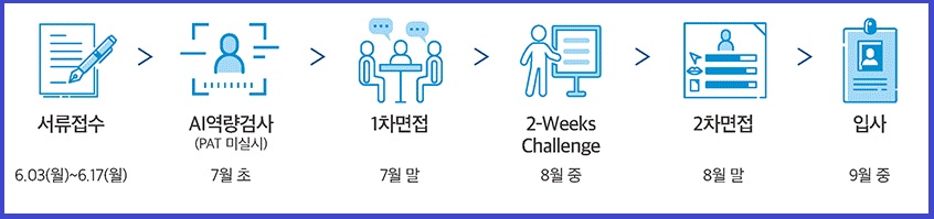 *전형 일정은 변동 가능하며, 건강검진은 2-Weeks Challenge 이후 별도로 실시합니다.
