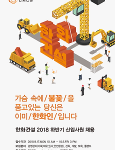 [건설워커 속보] 건설사 하반기 신입 공채 전격 공개 [건설워커 2018-09-27] 취업전쟁이다. 추석 연휴가 끝나자마자 하반기 건설사 신입사원 공채가 다시 쏟아지고 있다. 건설취업 구인구직포털 건설워커(www.worker.co.kr 대표 유종현)에 따르면 대림그룹, 대우건설, 한신공영, 금호건설, 서희건설, 자이에스앤디(GS건설 자회사) 등 주요 건설사들이 하반기 대졸 신입사원 공채를 진행한다. ◆ 대림산업/건설사업부, 고려개발, 삼호 등 대림그룹 건설 3사가 10월 7일까지 그룹공채 형태로 하반기 신입사원 채용을 진행한다. 모집분야는 토목, 건축, 플랜트, 전기, 설비, 안전, 조경, 외주구매, 관리 등이며 대림그룹 채용사이트에서 입사지원하면 된다. 지원자격은 ▲4년제 정.규대학교 이상의 채용분야 ..