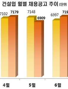 6월 건설사 채용, 전년비 2.76% 증가 6월 건설사 채용공고가 전년 동월에 비해 소폭 증가한 것으로 나타났다. 건설취업포털 건설워커(www.worker.co.kr 대표 유종현)는 지난 6월 자사 사이트에 등록된 건설사 전체 채용공고가 총 7,190건으로 전년 동월(6,997건)에 비해 2.76% 증가했다고 15일 밝혔다. 전달(5월 6,909건)에 비해서는 4.07% 증가했다. 분기별 채용공고수는 지난 2009년 1분기 20,311건, 2분기 21,247건, 3분기 21,530건, 4분기 21,674건으로 점차 증가했으며, 올 1분기에 21,073건으로 줄었지만 2분기 21,278건으로 회복됐다. 2분기 건설사 채용공고가 1분기에 비해 다소 늘었지만 고용시장 회복과는 거리가 멀다는 게 전문가 분석이다..